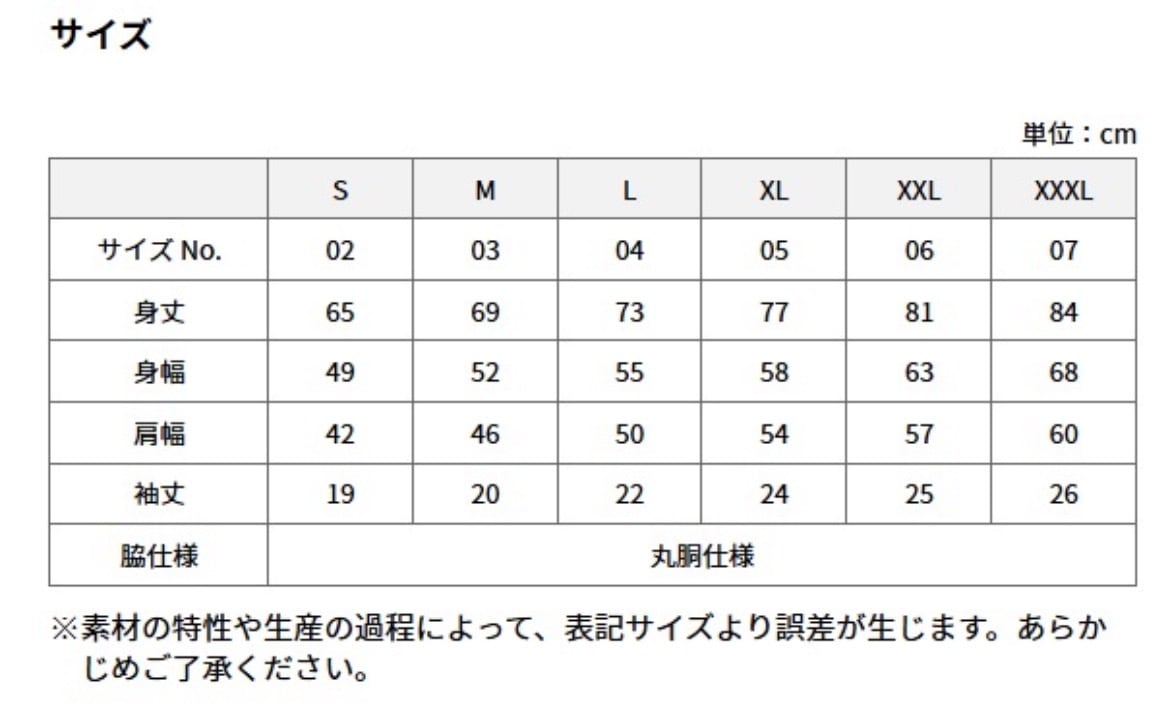 ゆったりと着て頂けるようにサイズ展開は